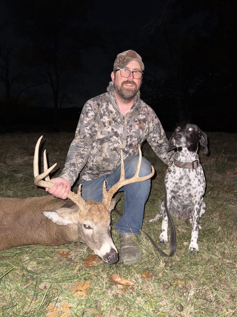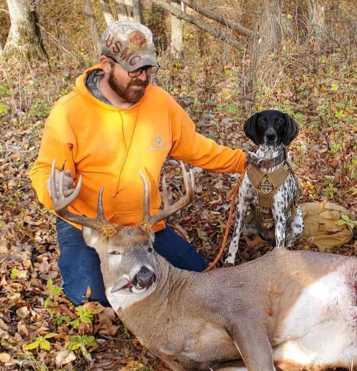 The day we put Alli on birds at around 8 weeks we knew she would be staying. Since then her drive and willingness to please has shown brightly. Alli is the essence of versatility. From a beauty in the ring finishing her UKC Championship, to deer tracking machine, to a great producer of detection dogs, I couldn’t have asked for a better “first” dog for Travis.