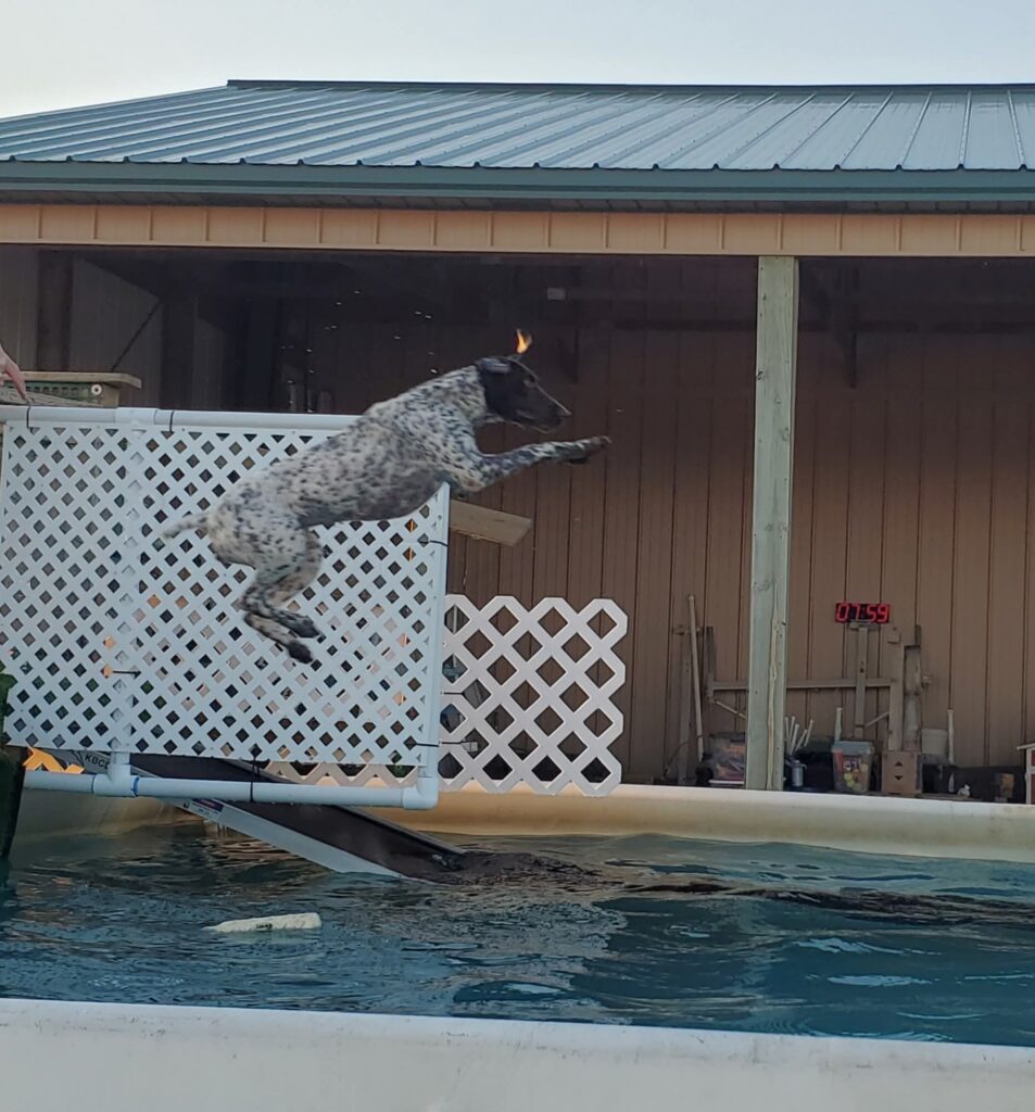 Nadia is from our C Litter (Colt x Alli) born 5/13/24. At 6 months old Nadia entered the conformation ring and picked up a couple of puppy of achievement points. Since then Nadia has primarily focused on training for human remains detection. Not everything around here is serious work and she has gotten to try dock diving. She makes regular appearances as a test dog for CGC testing at Kirkwood. In 2024 Nadia earned her virtual scentwork beginner title.